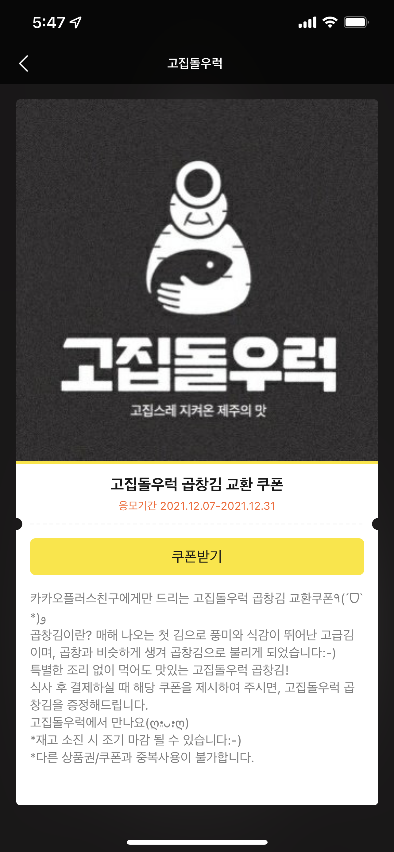 다양한 이벤트를 꾸준히 진행하는 것 같으니 제주도 여행을 한달 정도 여유있게 갈 계획이라면 미리 카카오톡 친구 추가를 해두면 도움이 될 것 같다.