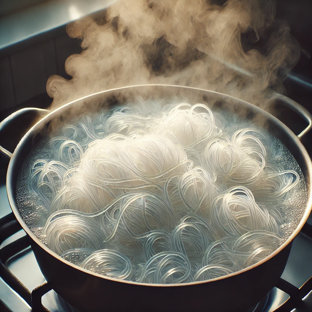 - 끓는 물에 당면을 넣고 6~7분 정도 삶아요. (너무 오래 삶으면 불어터져요!)