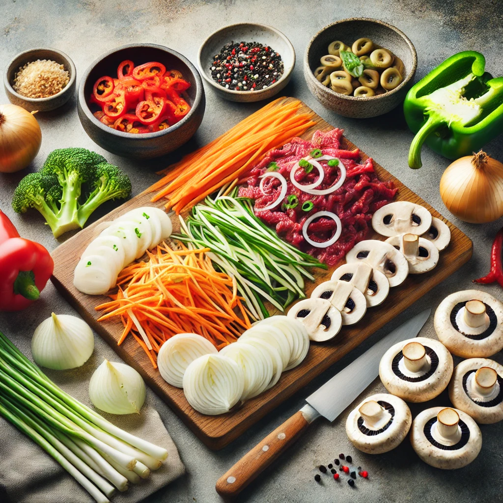 ✔ 당근, 양파, 표고버섯, 파프리카는 가늘게 채 썰어 주세요. (이왕이면 예쁘게!)