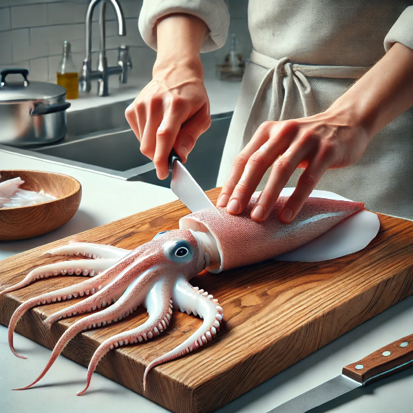 - Clean the squid thoroughly and remove the internal organs.